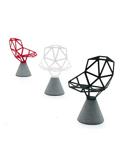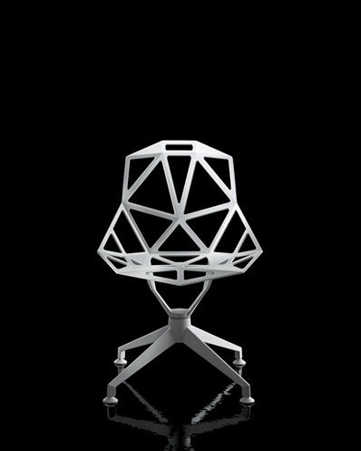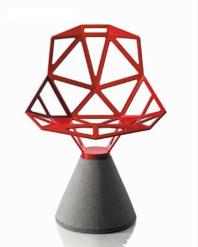 De Chair_One met betonnen voet is ontworpen door Konstantin Grcic voor Magis. De stoel is draaibaar en geschikt voor buitengebruik. De aluminium zitting is verkrijgbaar in diverse kleuren.