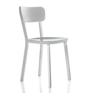 De kunststof stoel is verkrijgbaar in het wit, oranje en groen. In de Air collectie van Magis zit ook een armstoel, stoel en tafel.