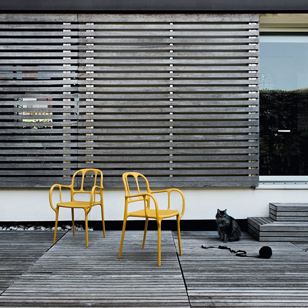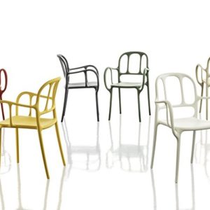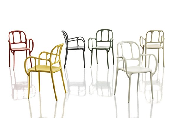 De Milà armstoel van Magis is ontworpen door Jaime Hayón. De stoel is gemaakt van kunststof met glasvezels waardoor deze ook buiten te gebruiken is. De stoel is stapelbaar tot maximaal zes stuks. Er zijn zes kleuren verkrijgbaar: rood, beige, wit, zwart, donkergroen en geel.