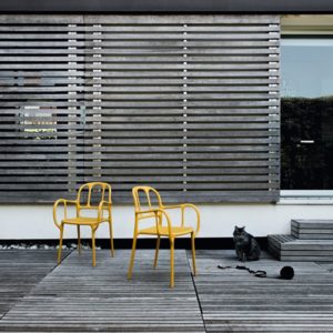 Naast deze armstoel voor buiten is er ook een gestoffeerde Milà stoel van Magis.