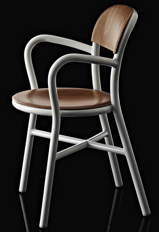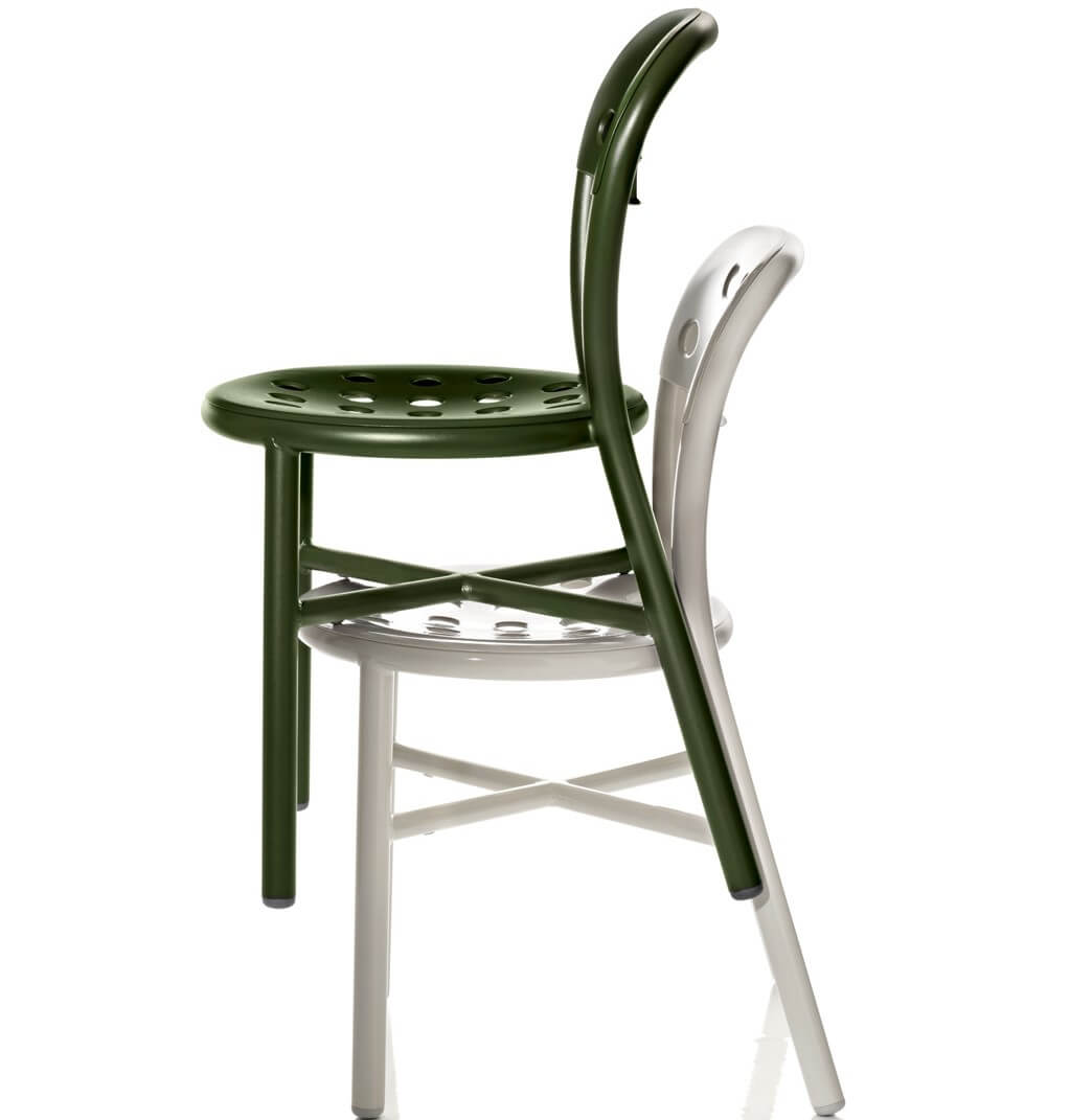 De Pipe stoel en armstoel van Magis zijn ontworpen door Jasper Morrison. Er zijn verschillende uitvoeringen in gelakt aluminium en er kan ook nog gekozen worden voor een model met een houten zitting en rugleuning. De stoelen zijn tot maximaal twee stuks stapelbaar.