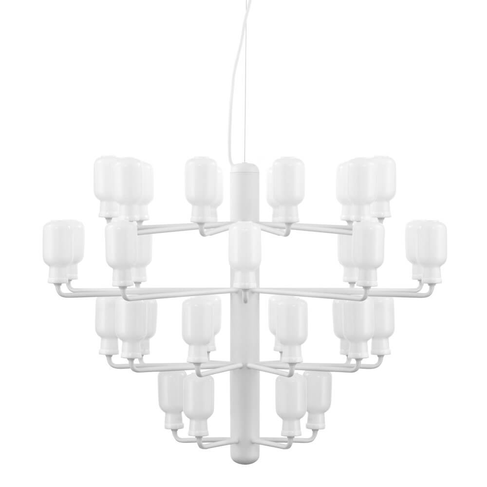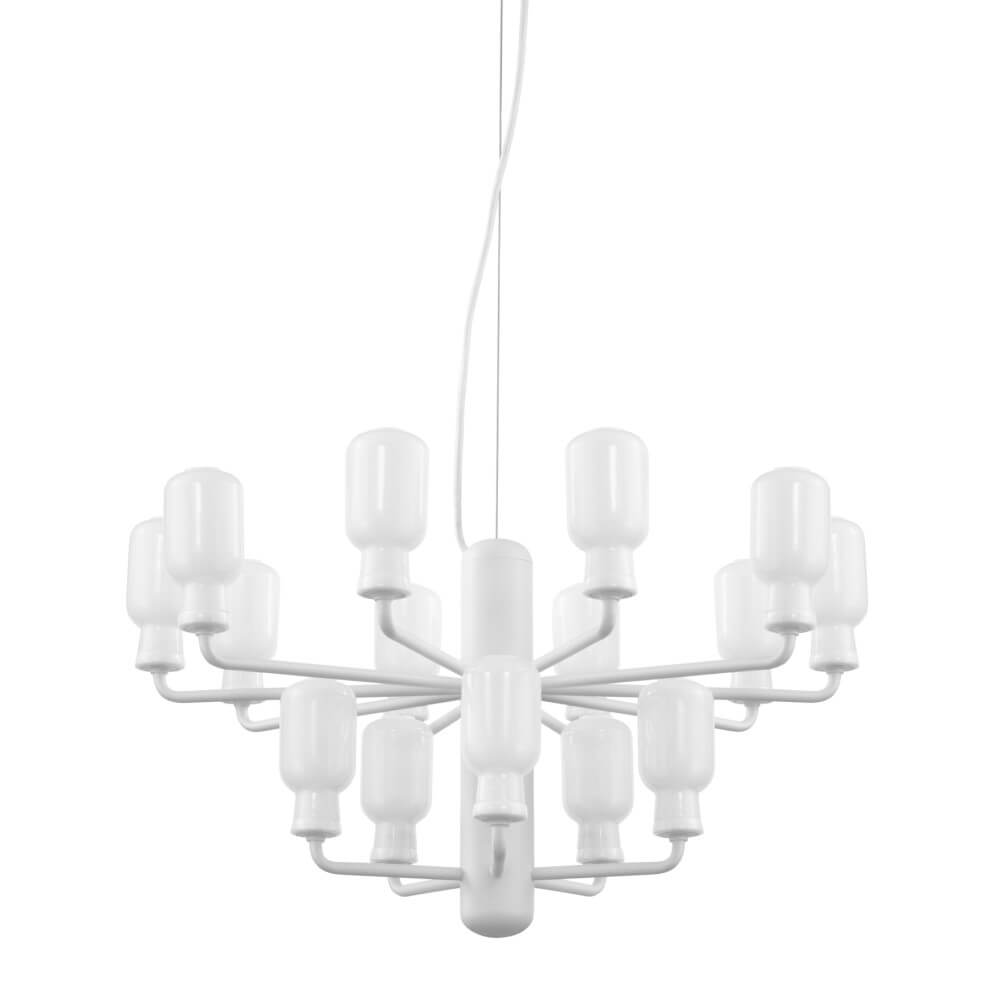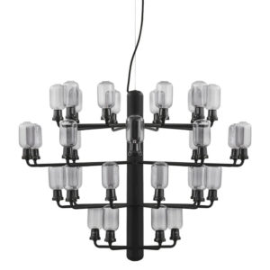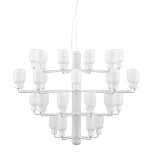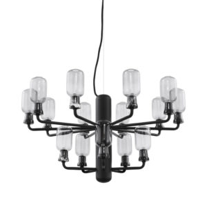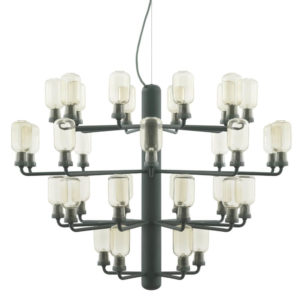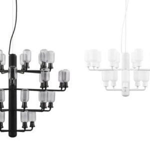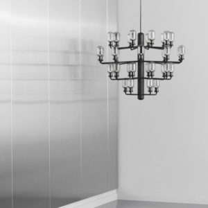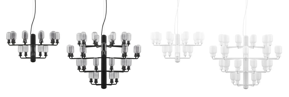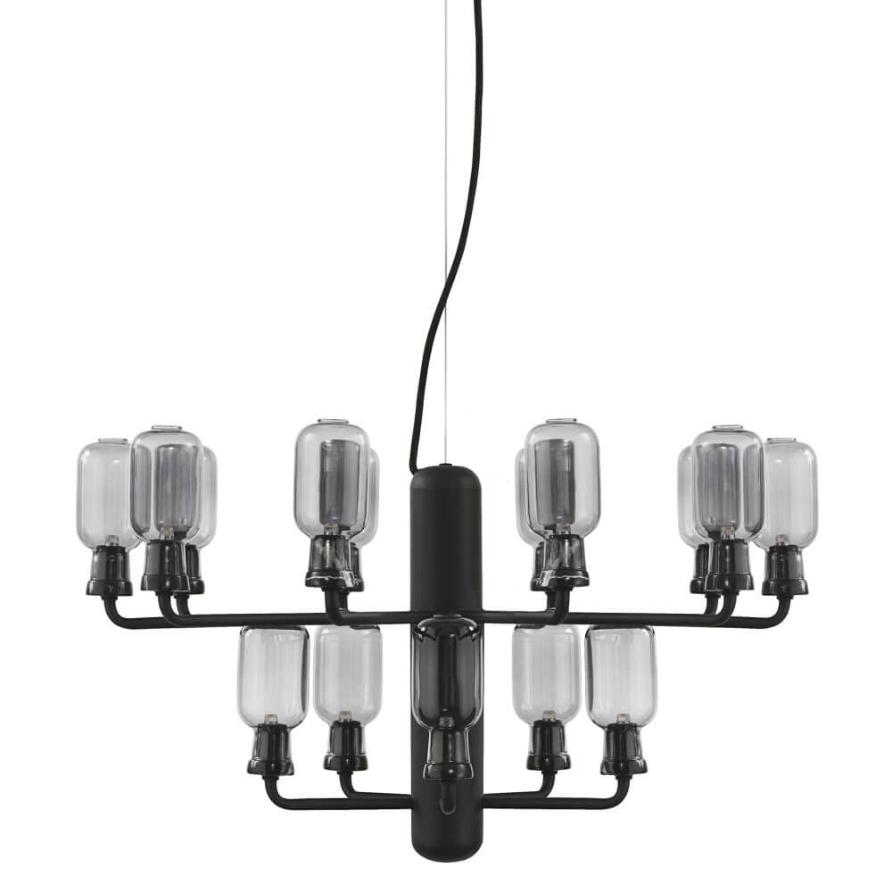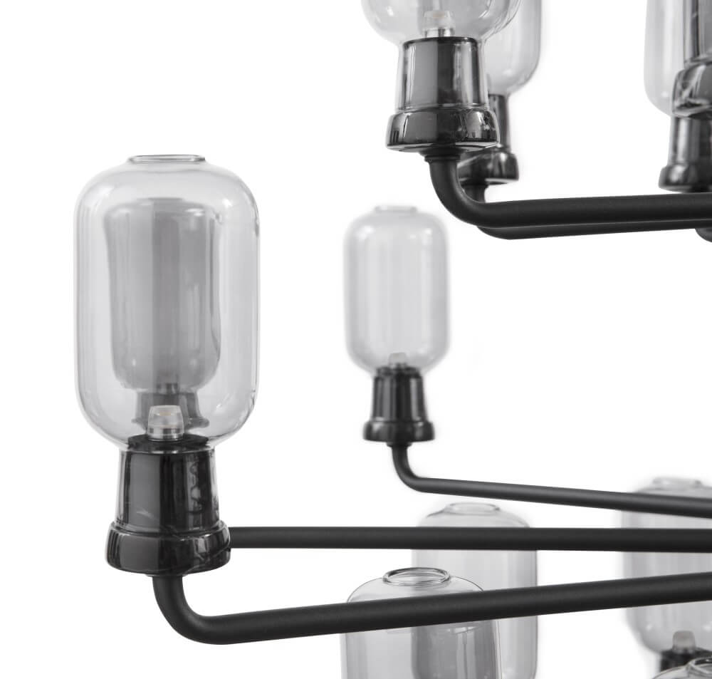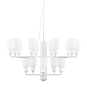 De Amp Chandelier is ontworpen door Simon Legald voor Normann Copenhagen. De kroonluchter is geïnspireerd op de buisvormige versterkers uit de jaren 60 (amplifiers). Dit is terug te zien aan de vorm van de glazen kappen. Bij andere modellen in de Amp collectie is deze vorm nog sterker teruggebracht in de lichtbronnen.