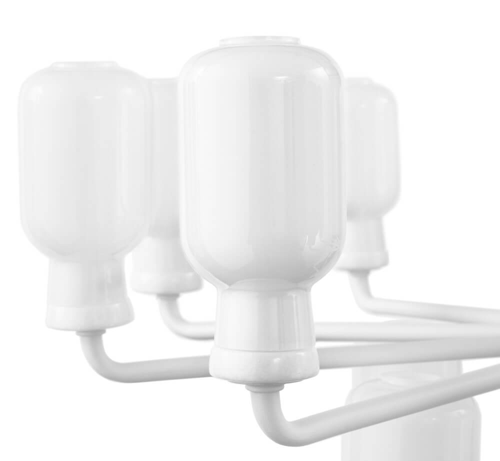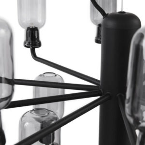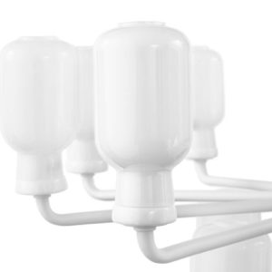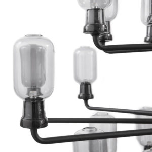 De kleine kroonluchter heeft een doorsnede van 62,5 cm en een hoogte van 32,5 cm. De large Amp Chandelier heeft een doorsnede van 85 cm en een hoogte van 62,5 cm. Het armatuur betaat uit diverse glazen kappen met daaronder een marmeren fitting. Er zijn verschillende uitvoeringen verkrijgbaar: