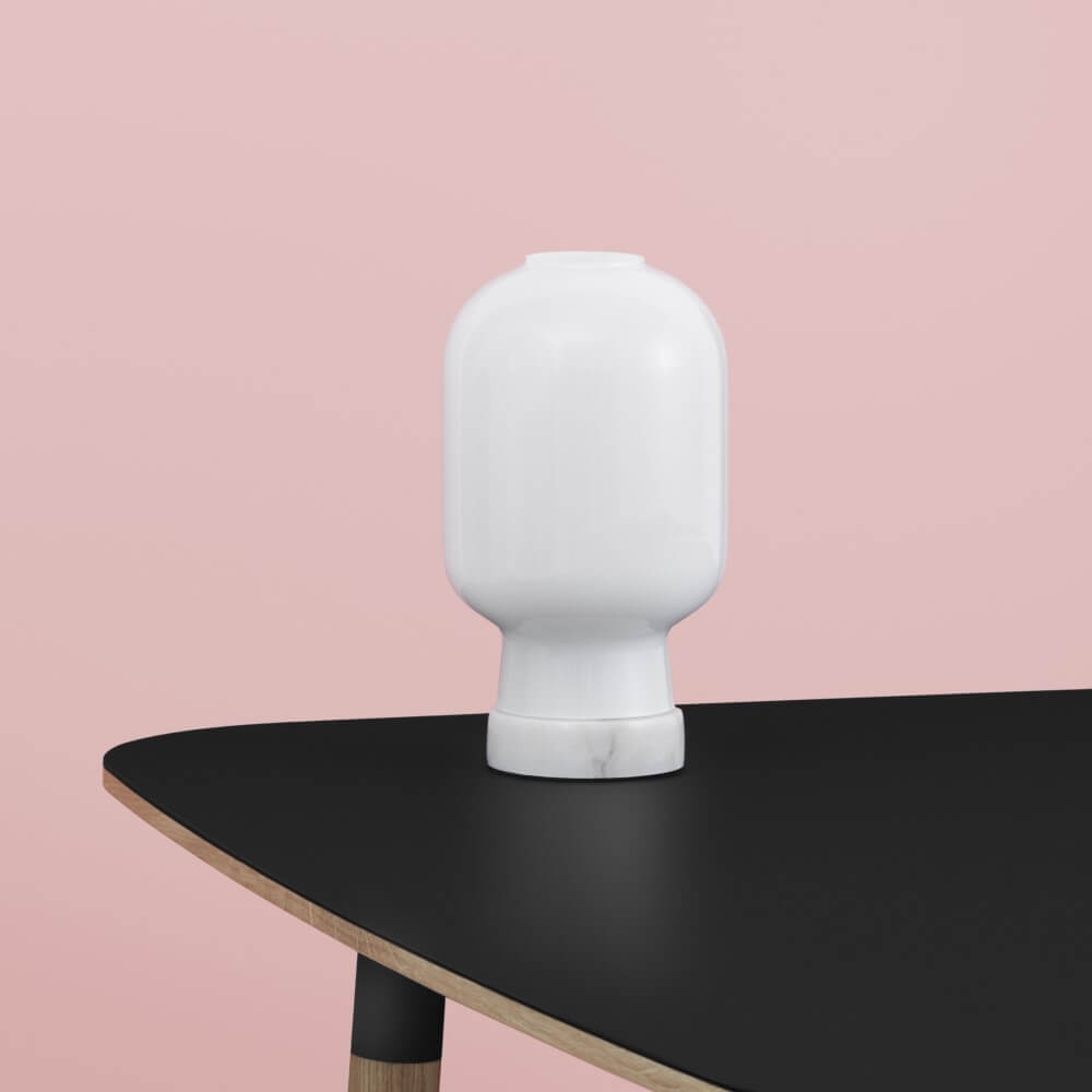 De Amp is ontworpen door Simon Legald voor Normann Copenhagen. De tafellamp is geïnspireerd op de buisvormige versterkers uit de jaren 60 (amplifiers). Dit is niet alleen terug te zien aan de vorm van de Amp, maar met name ook aan de lichtbron.