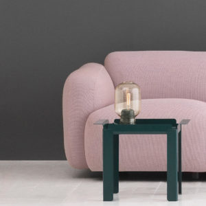 De Amp tafellamp heeft een doorsnede van 26,5 cm en een hoogte van 14 cm. Het armatuur betaat uit een glazen kap en een marmeren voet. Er zijn verschillende uitvoeringen verkrijgbaar: