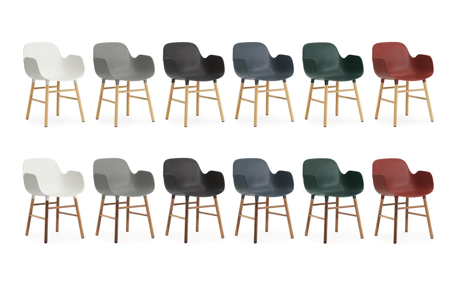 De Form armstoel is ontworpen door Simon Legald voor Normann Copenhagen. De kunststof ztitting is verkrijgbaar in het blauw, zwart, grijs, wit, rood en groen. Er kan ook gekozen worden uit diverse stoffen. Ook leer is mogelijk. Het onderstel is verkrijgbaar in eiken naturel, eiken zwart gebeitst en walnoot.