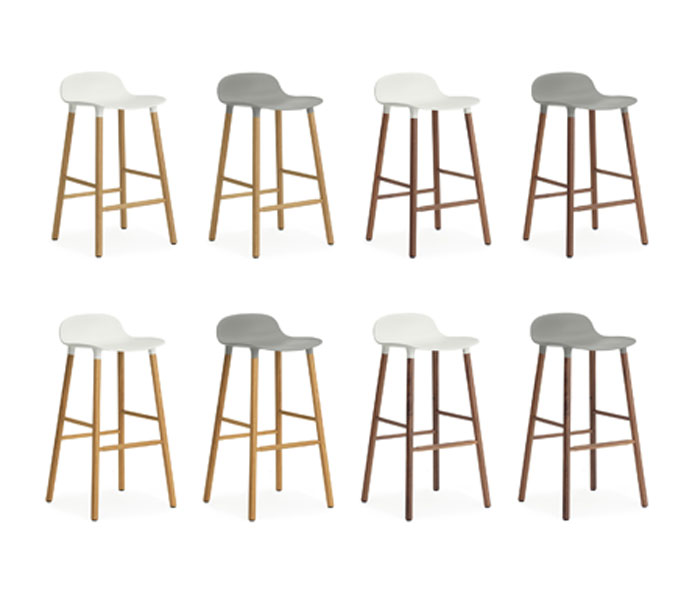 De Form is ontworpen door Simon Legal voor Normann Copenhagen. De barkruk is vekrijgbaar met een 4-poot in eikenhout (eiken naturel, zwart gebeitst), walnoot, metaal, messing of verchroomd. De kunststof zitschaal is verkrijgbaar in blauw, zwart, grijs, rood, groen en wit. Er kan ook gekozen worden voor een gestoffeerde zitting.