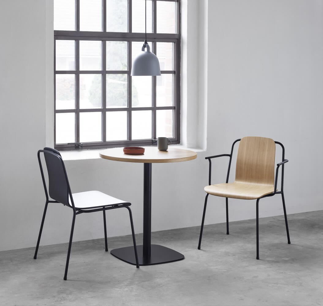 De Form Café tafel met houten blad is door Simon Legald ontworpen voor Normann Copenhagen. De tafel heeft een vierkant blad van 70×70 cm of een rond blad met een doorsnede van 70 cm. De Form Café table is beschikbaar in de onderstaande uitvoeringen:
