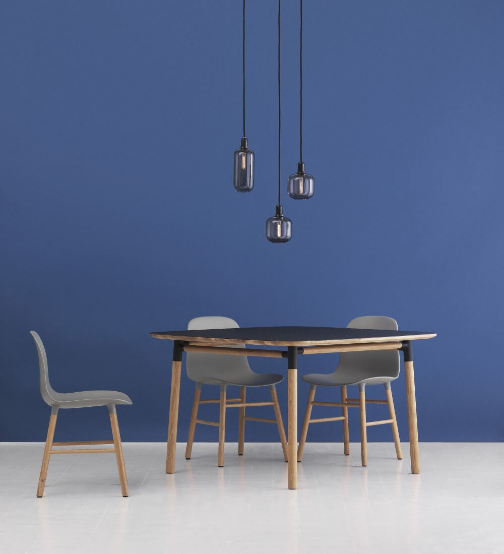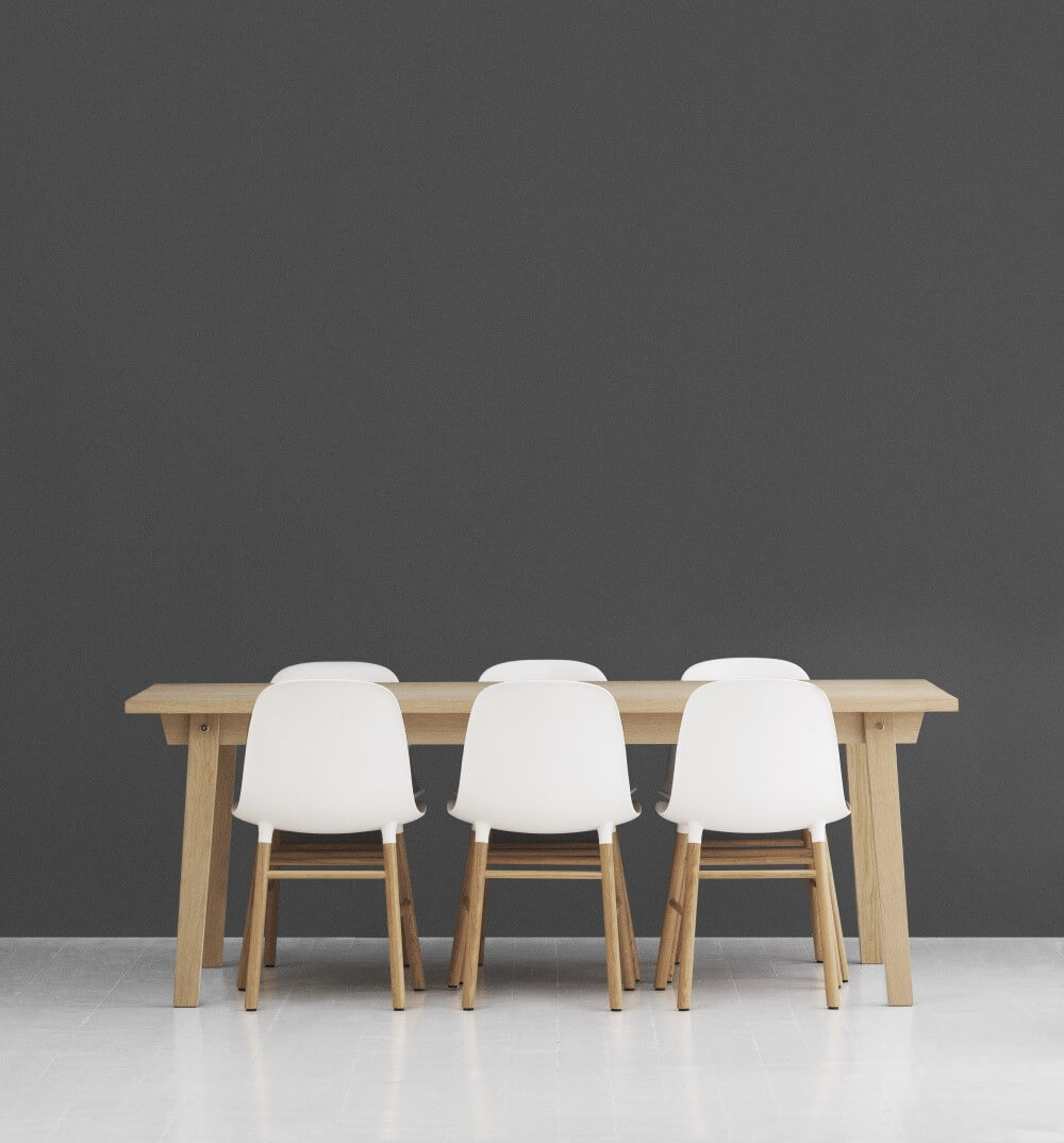 De Form tafel is door Simon Legald ontworpen voor Normann Copenhagen. De tafel heeft afgeronde hoeken en is beschikbaar in twee afmetingen: 120×120 cm of 95×200 cm. De hoogte is 74,4 cm. Het onderstel is gemaakt van eiken. De Form tafel is verkrijgbaar in de onderstaande uitvoeringen: