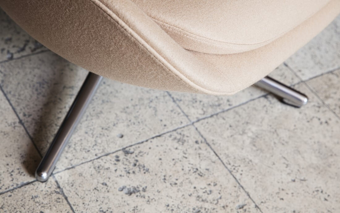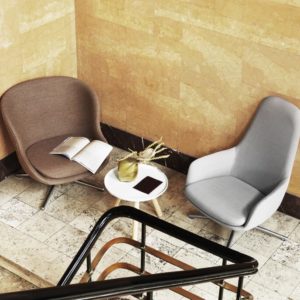 Er zijn diverse stoffen mogelijk van de Camira collecties Main Line Fax en Synergy. Voor het leer is er gekozen voor Sørensen Læder de Ultra collectie. Het 4-poots onderstel kan afgewerkt worden met een blanke lak of zwarte beits. De aluminium kruisvoet is kan ook afgewerkt worden met een zwarte poedercoating.