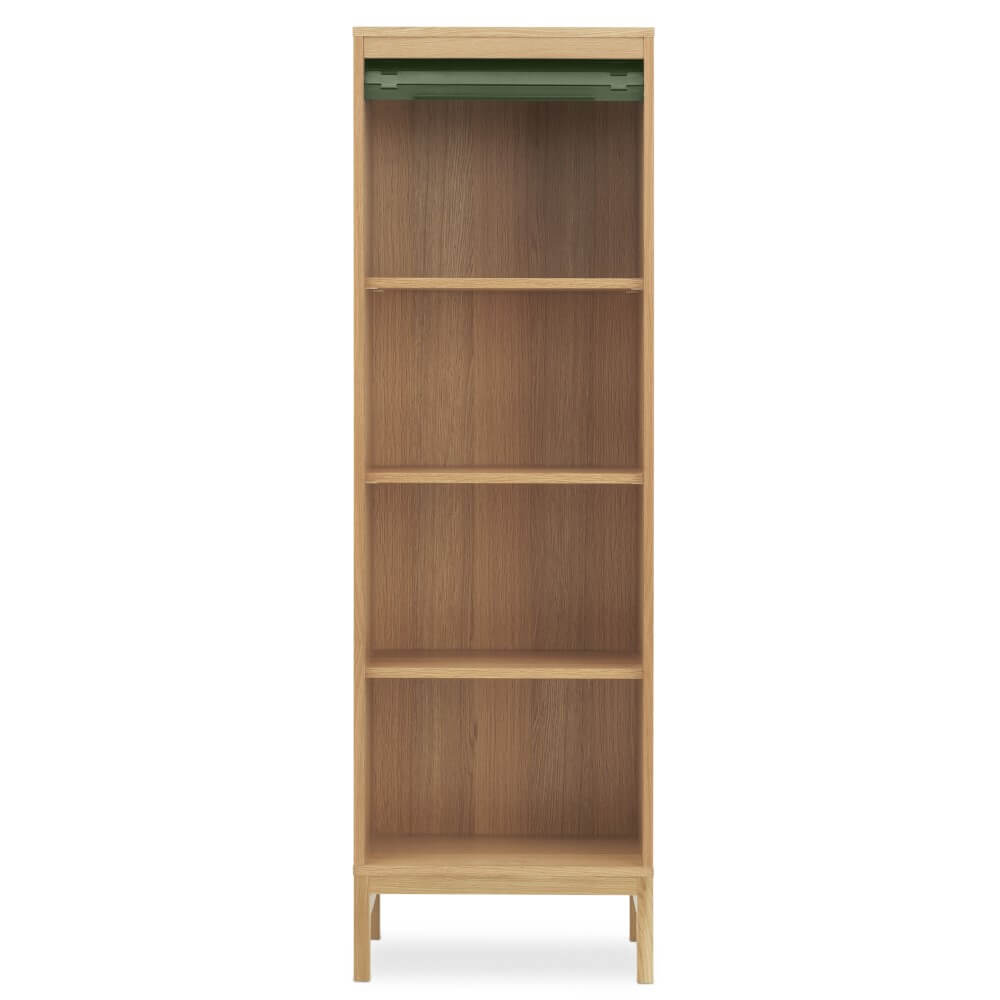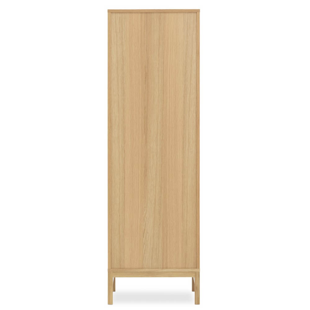 Het frame is gemaakt van MDF met gelakt eiken fineer met massief eikenhouten poten. De roldeur is gemaakt van kunststof en verkrijgbaar in drie kleuren. De planken kunnen naar eigen wens worden ingedeeld. Hierdoor is de Jalousi high geschikt voor zowel in huis als voor op kantoor.