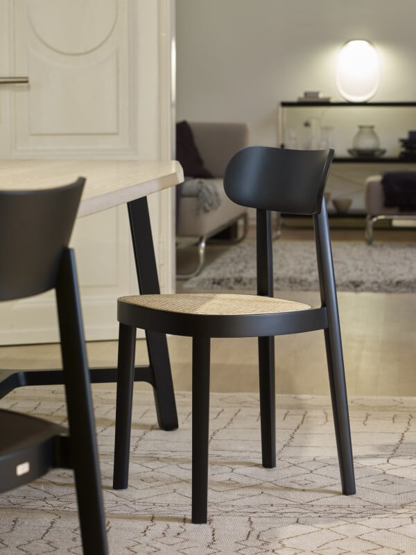 De S 118 ontworpen door Sebastian Herkner is minimalistisch, eerlijk, rank en elegant: de klassieke houten stoel 118 verleent elke eettafel en elk restaurant een subtiel-stijlvolle uitstraling. Het principe om een stoel te reduceren tot zo min mogelijk onderdelen werd door Michael Thonet al halverwege de 19e eeuw ingevoerd. Stoel 118 zet dit overgeërfde principe voort en gaat daarbij zelfs nog een stap verder.
