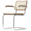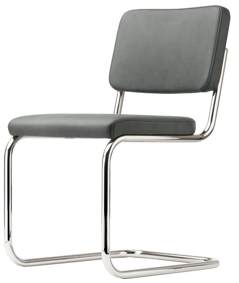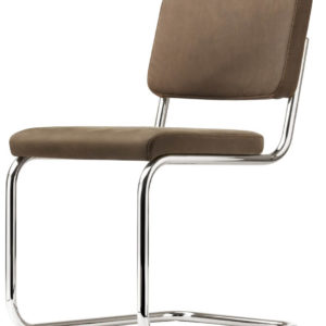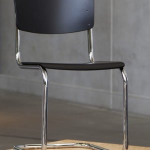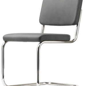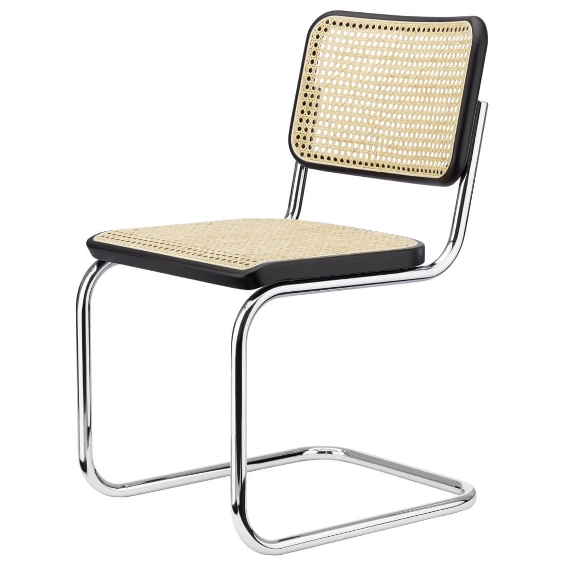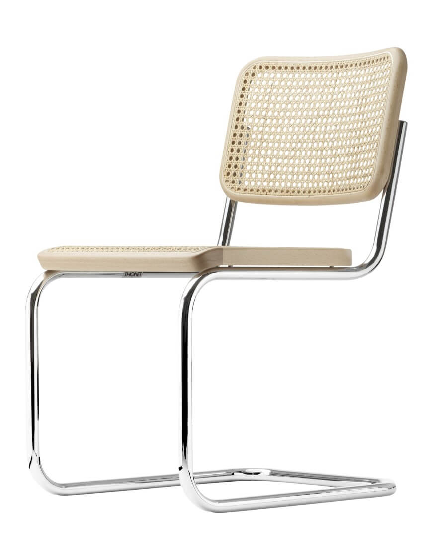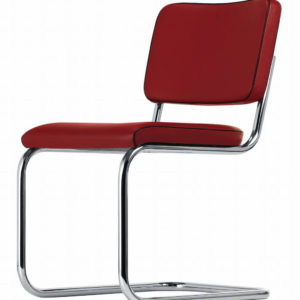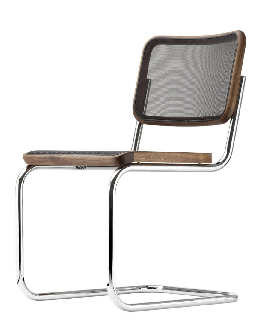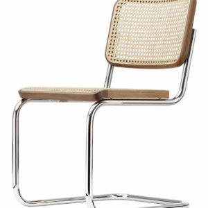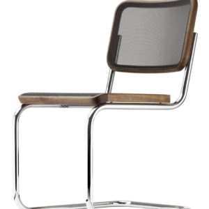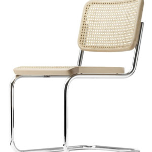 Met (S 64) of zonder (S 32) armleuningen. Frame van verchroomde stalen buizen. Houten onderdelen van gebeitst beuken of afgelakt. Zitting en rugleuning bespannen met gevlochten riet*, netwave of gepolsterd en met leder of stof overtrokken.