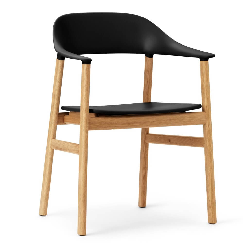 De Herit is ontworpen door Simon Legald voor Normann Copenhagen. De armstoel bevat rondingendie zijn afgestemd op de vorm van het lichaam. Dit zorgt voor ondersteuning, zitcomfort en om een goede zithouding aan te kunnen nemen.
