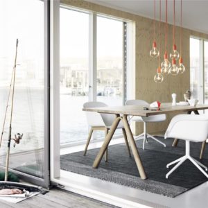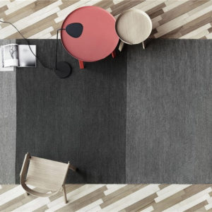 Het Varjo vloerkleed van 240×170 cm is ontworpen door Tina Ratzer voor Muuto. Met zijn naam van het kleed is afgeleid van het Finse woord voor ‘schaduwen’. In dit ontwerpt verwijst het naar hoe de geweven textuur een gevoel van schaduw en licht creëert binnen het weefsel. Met een uniek patroon en discrete kleurblokkering. Er zijn twee kleurstellingen beschikbaar.
